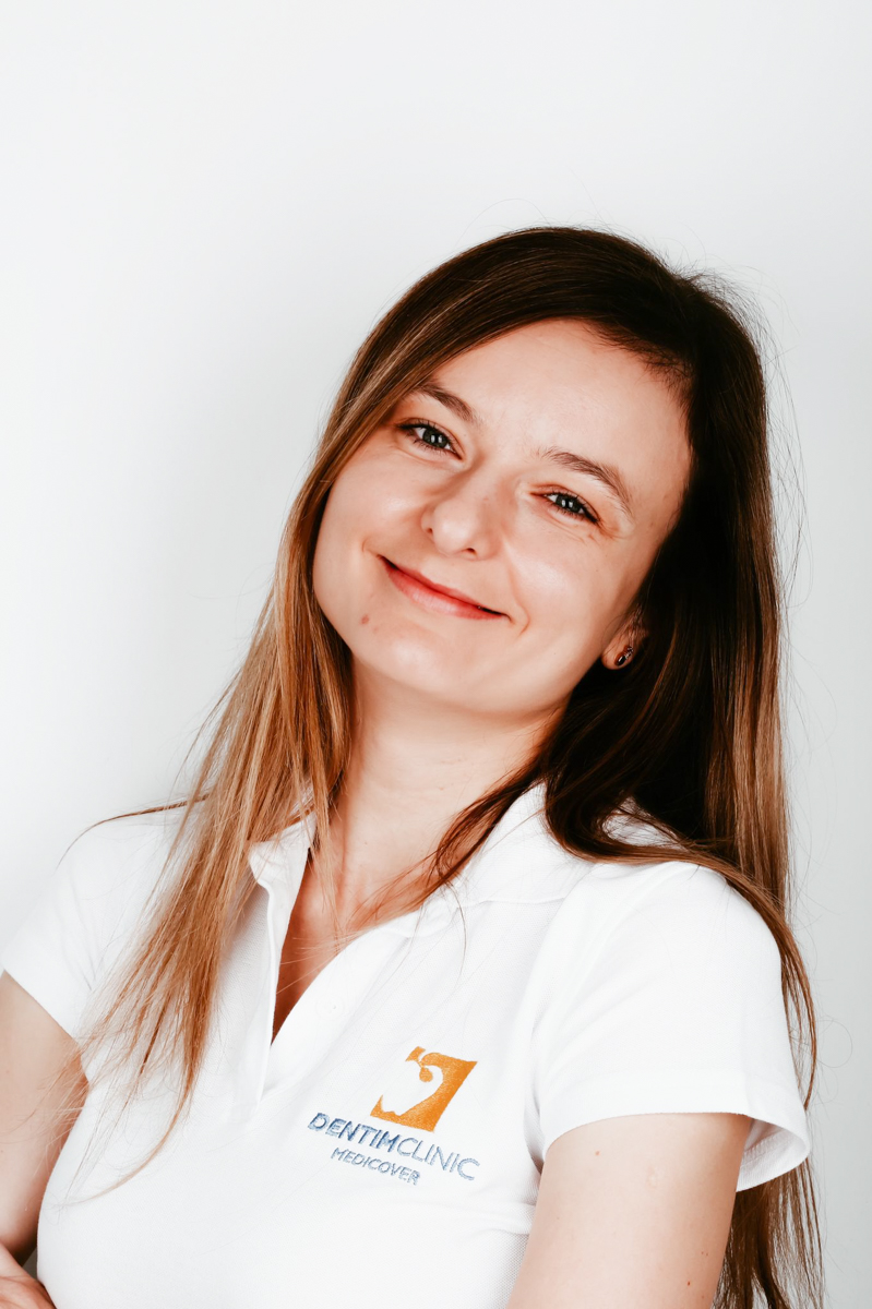 Ewa Slabik, higienistka stom.Zdjęcia eksperta:Ekspert wypowiadał się ostatnio w artykułach:W Dentim Clinic asystuje przy zabiegach protetycznych, leczeniu zachowawczym i stomatologii estetycznej. Jako higienistka stomatologiczna wykonuje również zabiegi higienizacyjne i wybielające.